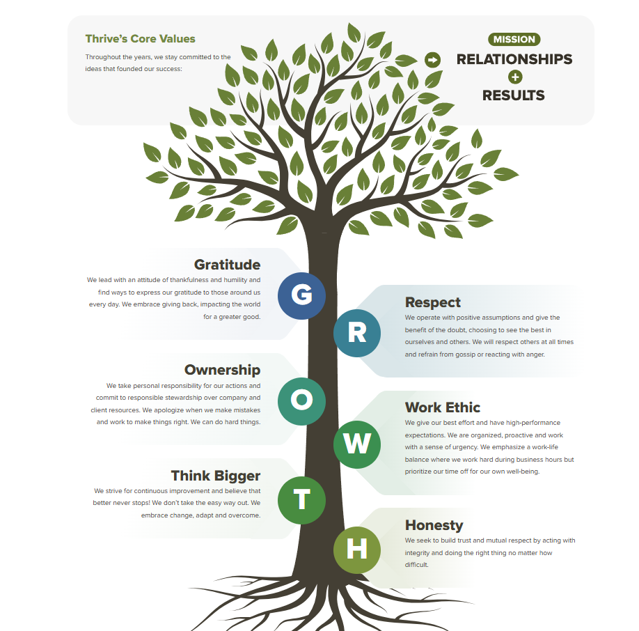 Thrive’s success is deeply rooted in its culture and values. We maintain a strong company culture